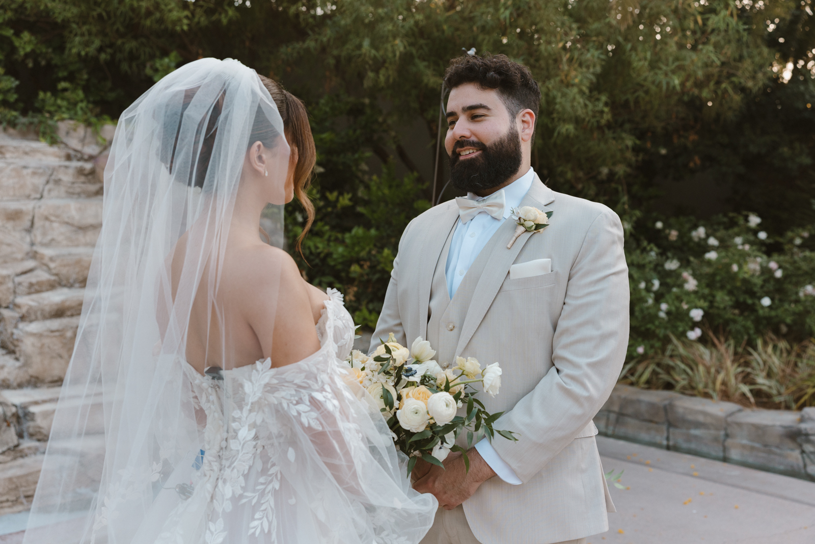 The couple selected for the shoot played a crucial role in its success. Their authentic chemistry brought the fairy tale to life, with the bride embodying soft elegance in a romantic gown from The Story Bridal that accentuated her natural beauty. The ethereal hair and makeup by Primrose Glam enhanced her delicate features, while the groom’s rugged appeal was perfectly captured in a tailored suit from Friar Tux that complemented the overall aesthetic.
