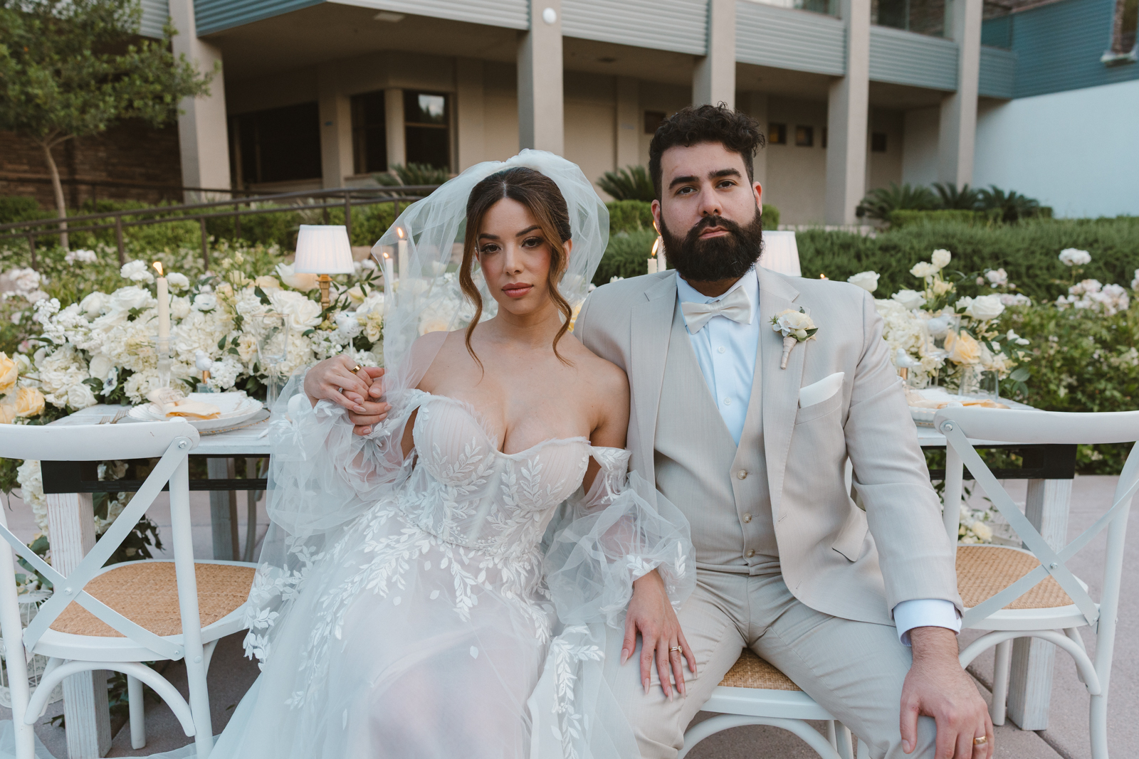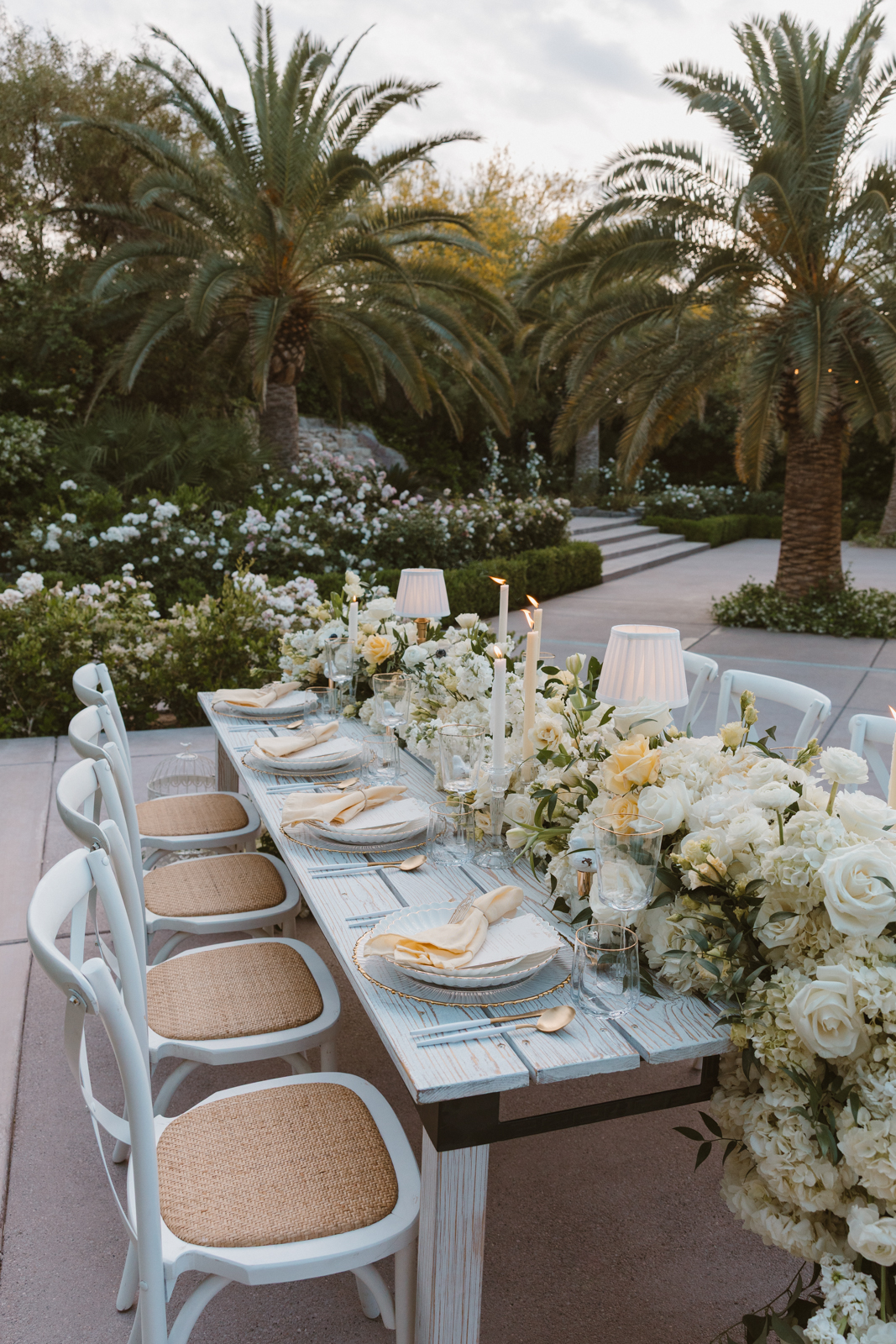The floral arrangements took center stage, with a grand flowing centerpiece and towering arches that exuded romance and whimsy. Flora Couture transformed the vision into reality, incorporating delicate blooms that perfectly captured the essence of the garden theme. Every detail was thoughtfully curated to ensure a cohesive aesthetic, embodying the romantic spirit of the shoot.