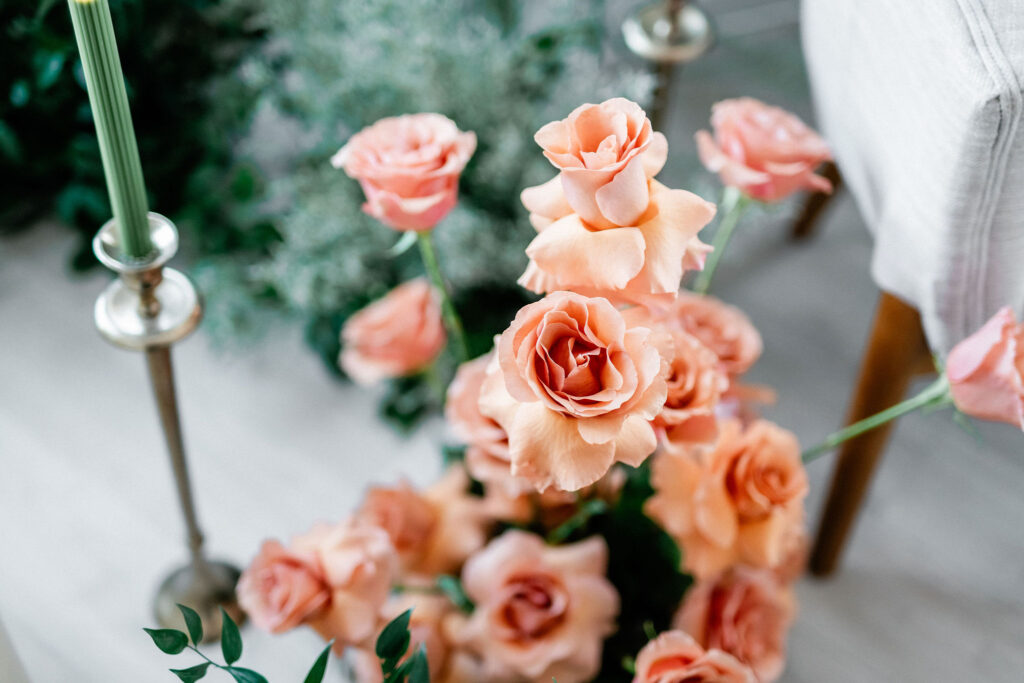 The next step in creating a flower budget for your Las Vegas wedding is how much to estimate. 15 – 20% of your overall budget is a standard guide to budgeting for floral, but it’s important to take into account the size of your wedding party and guest count. Bridal party floral can add up quickly, especially if you plan to include immediate family. Larger guest counts will also need more decor for the tables but Roshanda suggests using three to four options for centerpieces which can be both cost effective and add interest to the space.