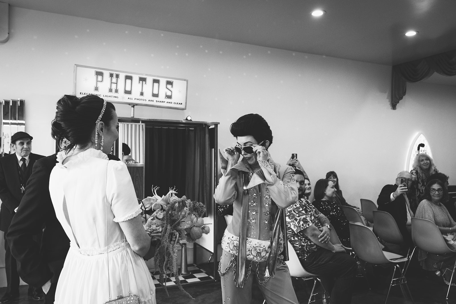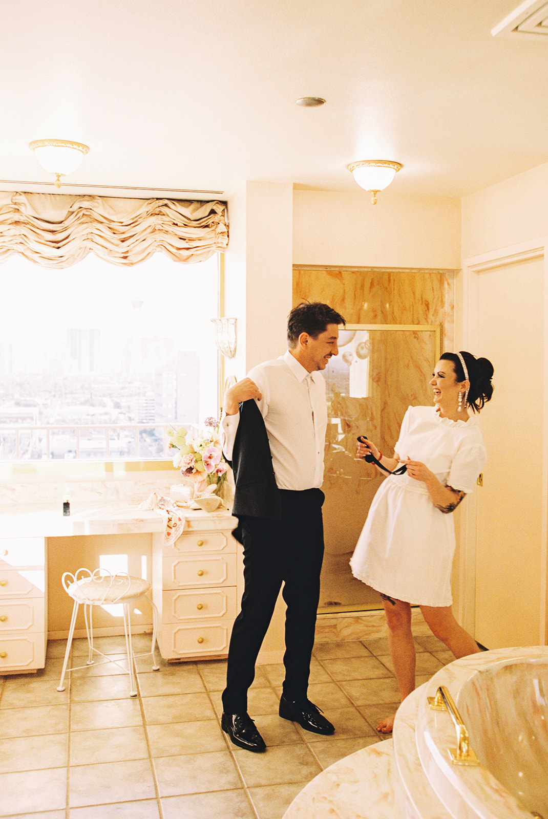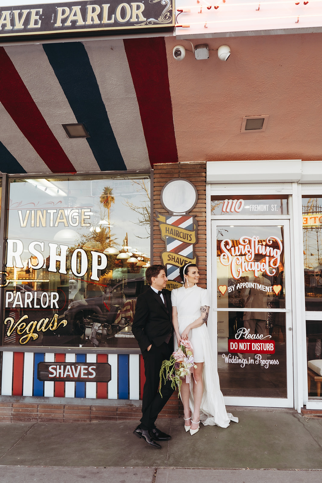 Zoe and Ryan’s classic Vegas wedding was a delightful throwback to Old Vegas elegance, blending vintage charm with modern sophistication. The couple exchanged vows at the iconic Sure Thing Chapel, presided over by the legendary Lady Elvis, setting the tone for a celebration that was both intimate and unforgettable.