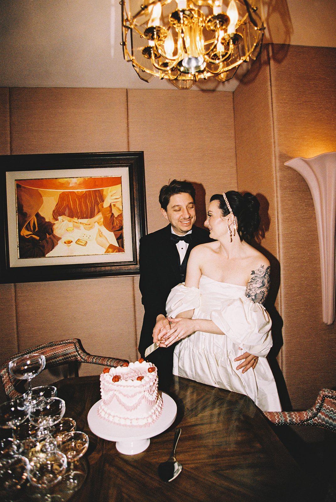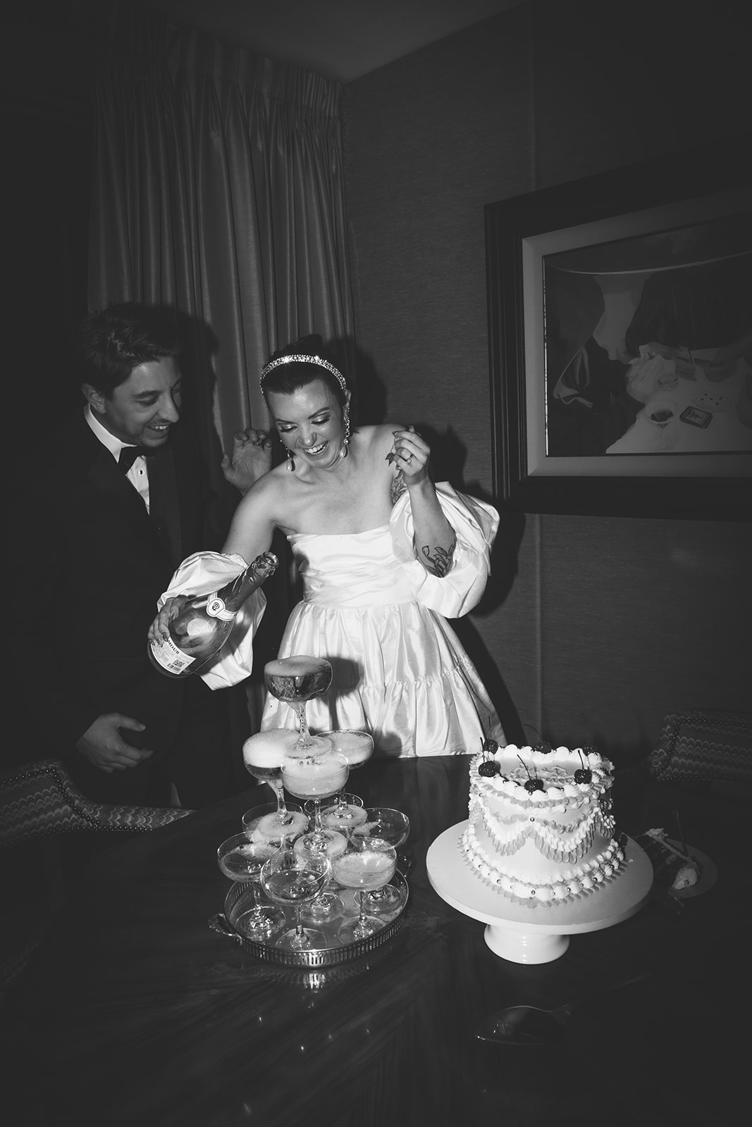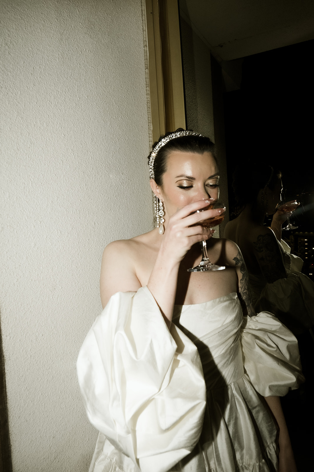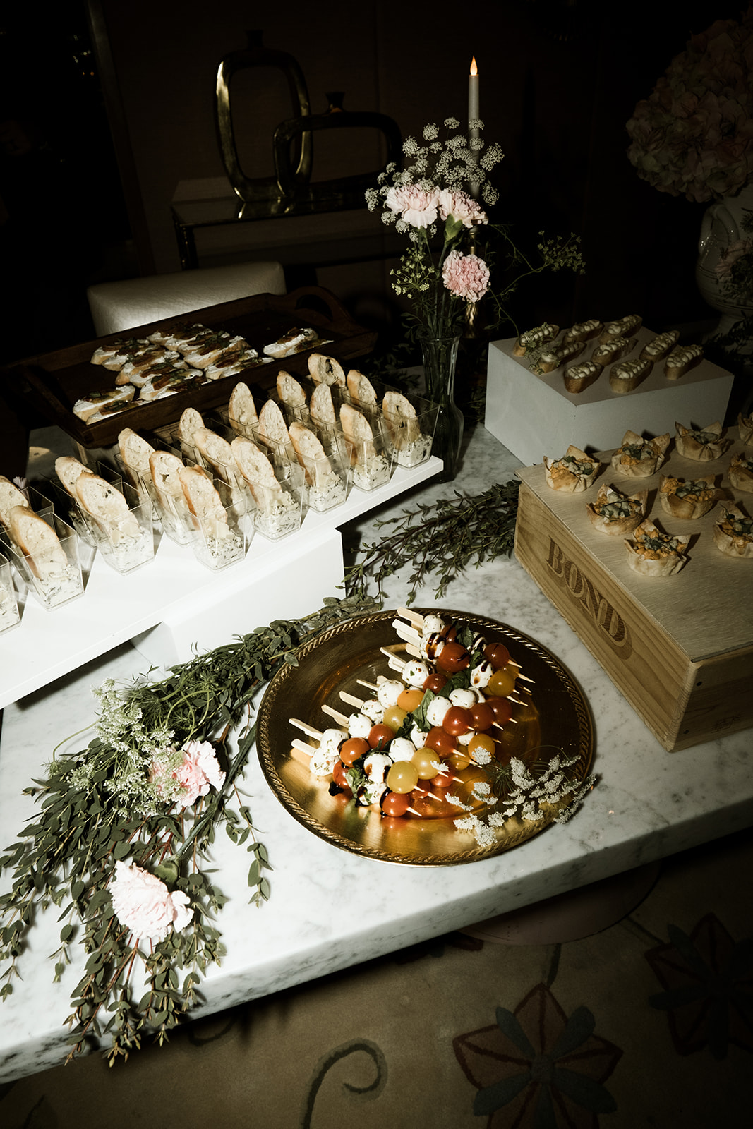 Following the ceremony, guests were whisked away to the Jackie Gaughan suite at the El Cortez Hotel & Casino for a cocktail reception that was anything but ordinary. The evening was elevated with a roaming magician, mobile caviar server, and a portrait studio, ensuring that every moment was filled with wonder and delight. Guests savored a delectable spread from Cheese and Grace while sipping on signature craft cocktails – a personal touch that paid homage to the groom’s bartending background.